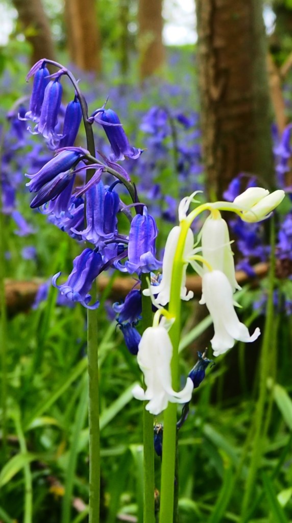 First of the many May bank holidays, took a hike up a big hill to find some bluebells. Found some white ones and discovered the difference between native bluebells and Spanish ones. These being native because of the way they droop over. White bluebells being relatively rare – 1 in 10,000.
